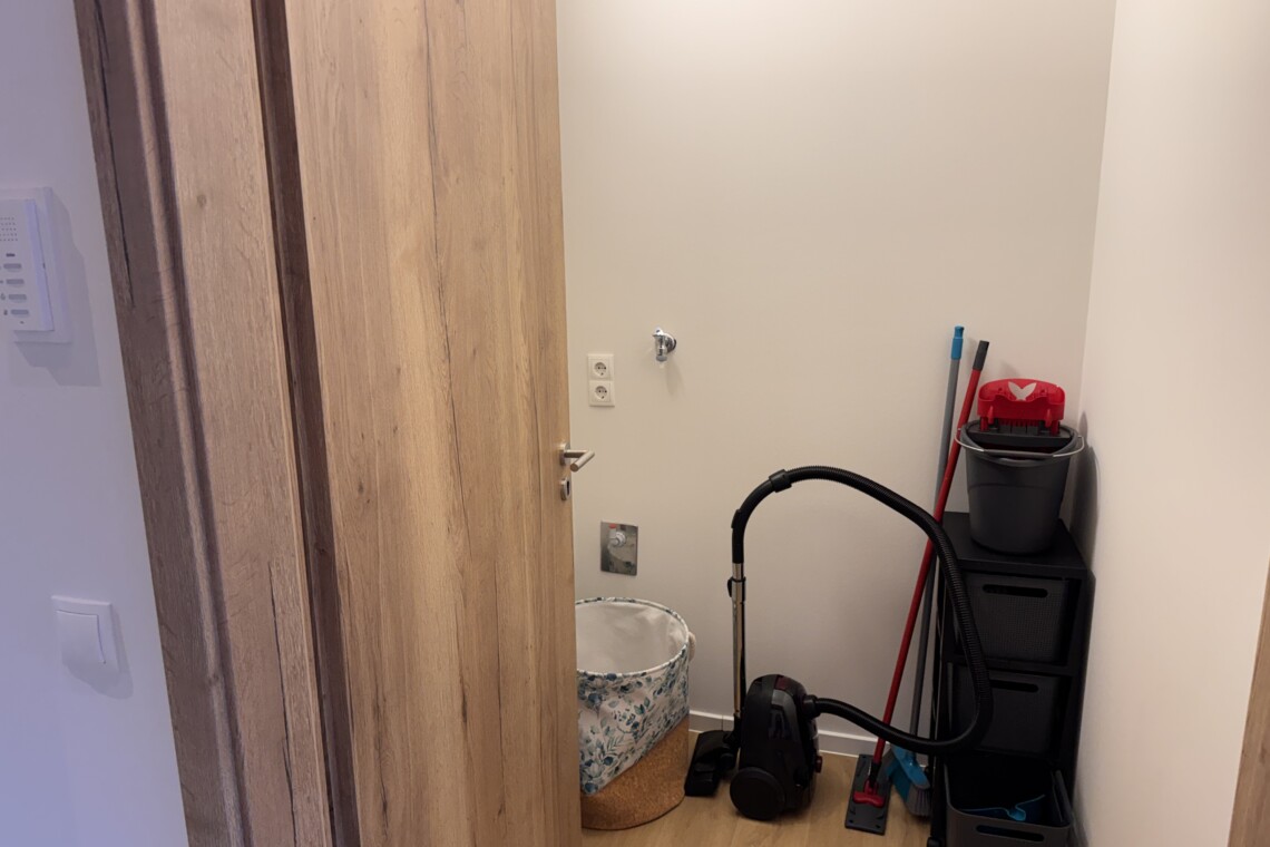 - Besen, Kehrblech, Wischer, Staubsauger (im Abstellraum)