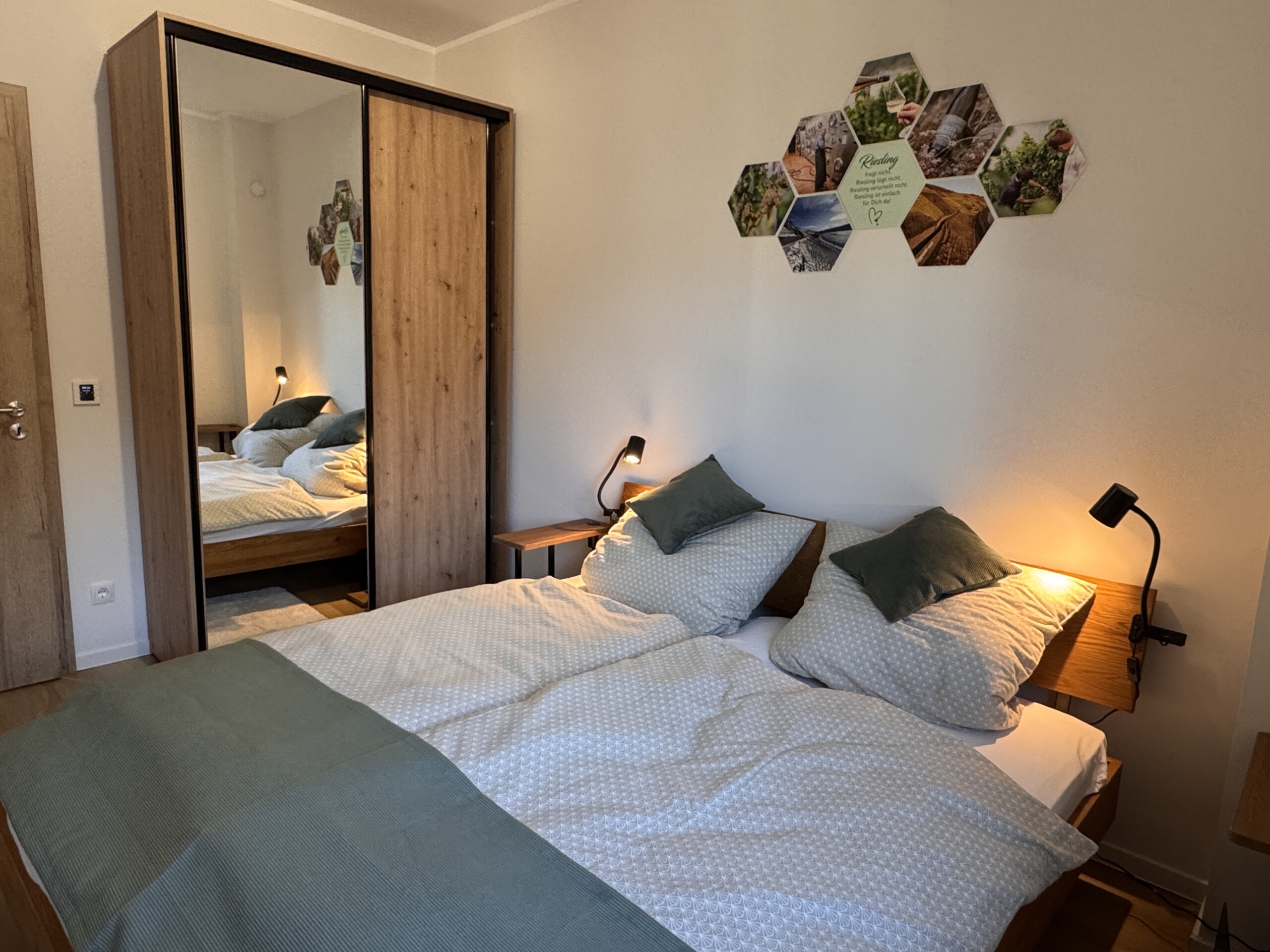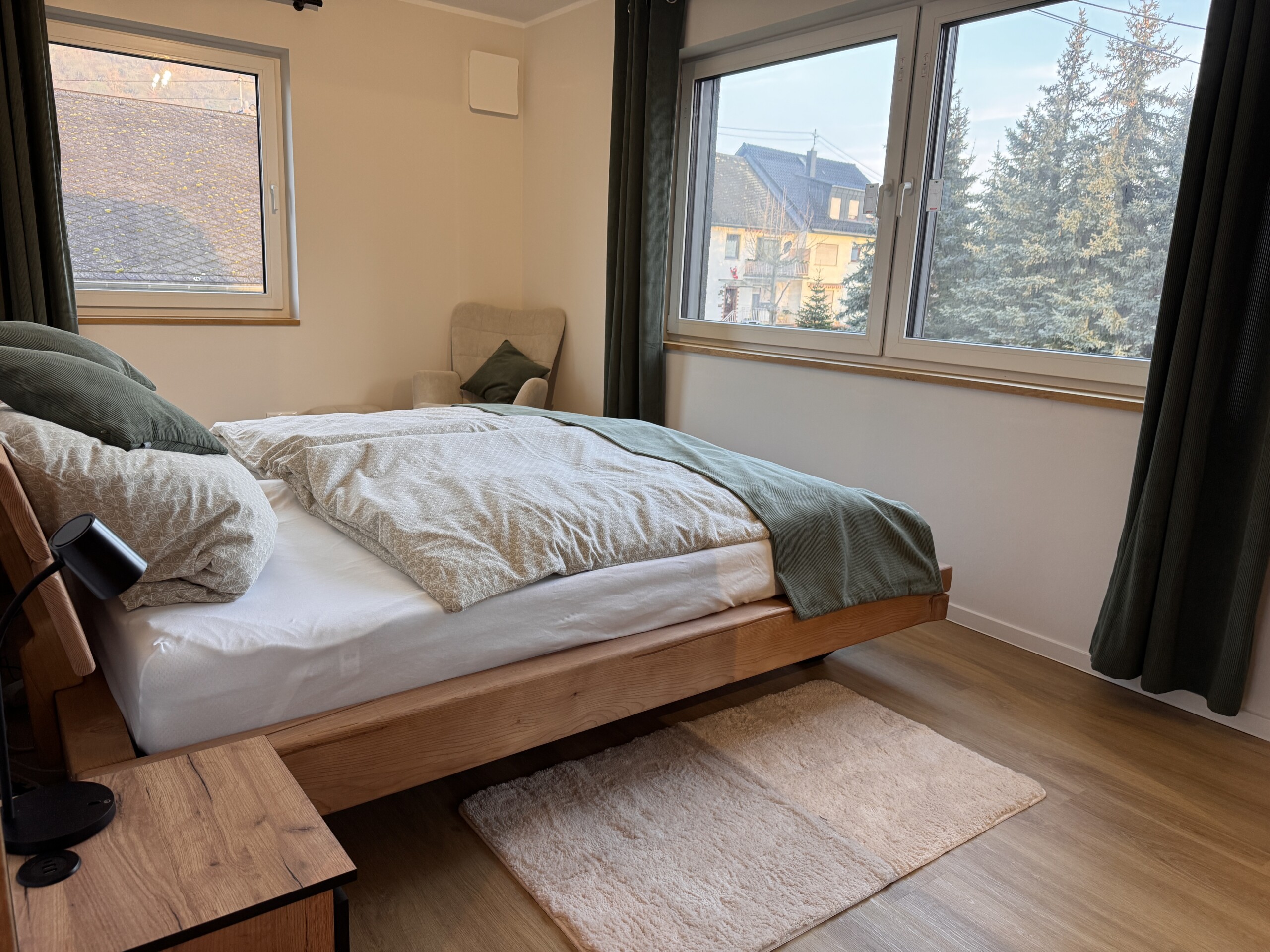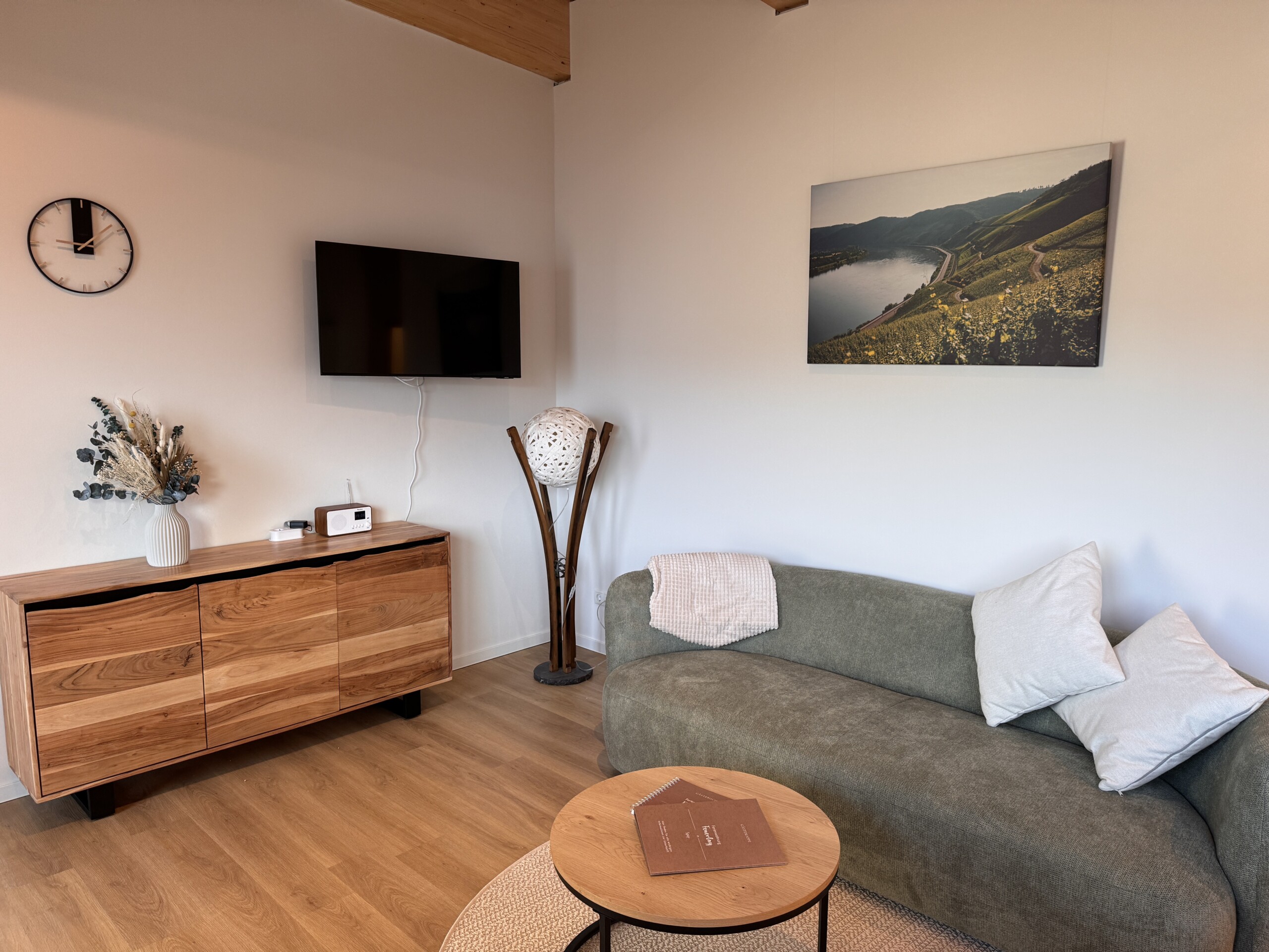 Unsere Ferienwohnungen sind Rückzugsorte zum Ankommen und Entspannen. Hochwertige Materialien, durchdachte Raumaufteilung und eine warme Atmosphäre sorgen dafür, dass Sie sich vom ersten Moment an auf den 62 qm wohlfühlen. Ob ruhiger Schlaf nach einem aktiven Tag oder gemütliche Stunden im Wohnbereich – genießen Sie Komfort, Ruhe und Raum für Ihre Auszeit am Mittelrhein.