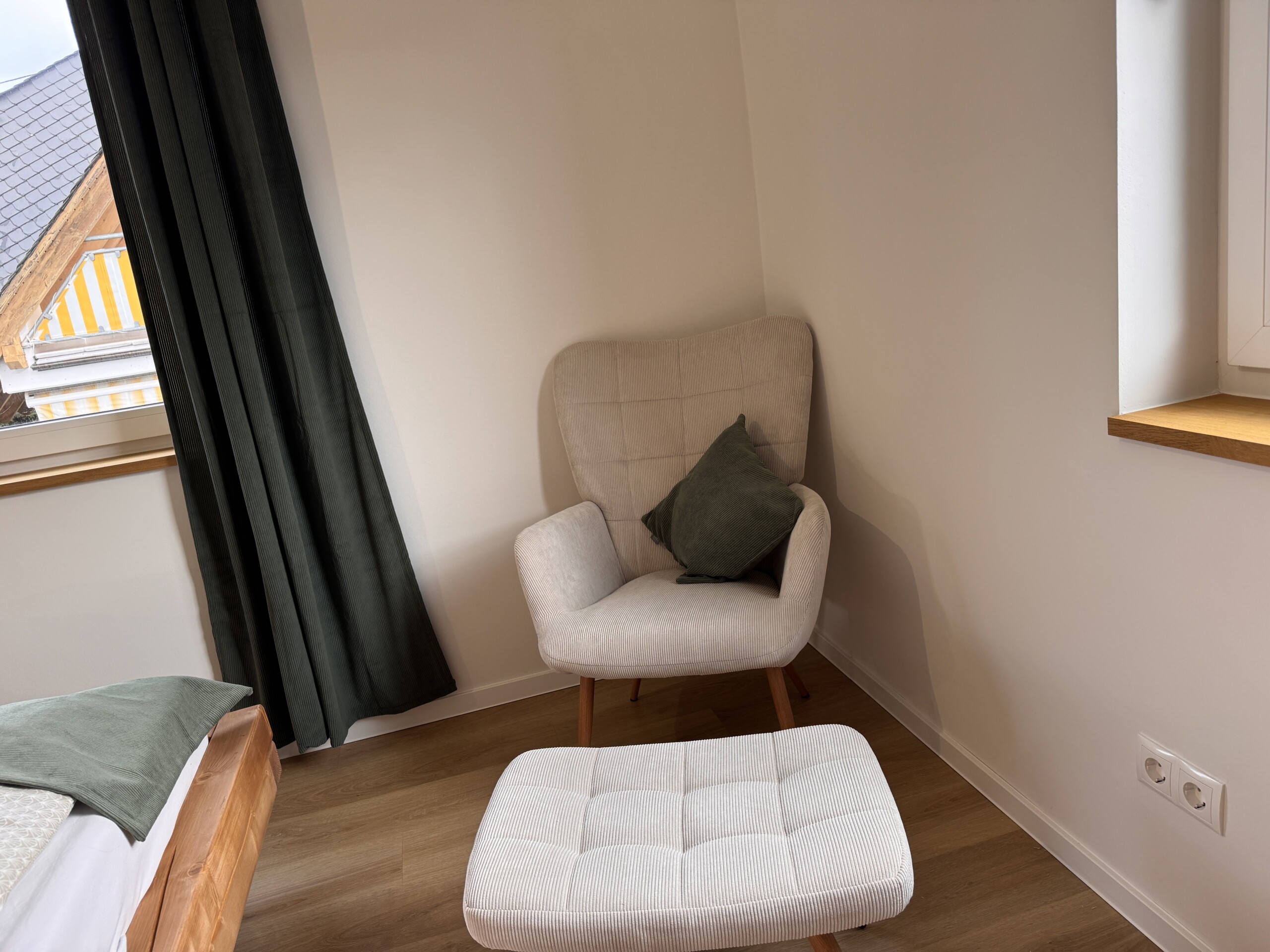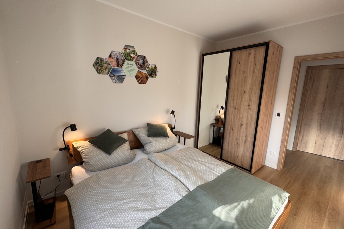 - Zwei separate Schlafzimmer mit hochwertigen Betten (1 × 2,00 m und 1 × 1,80 m)