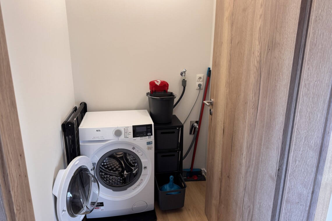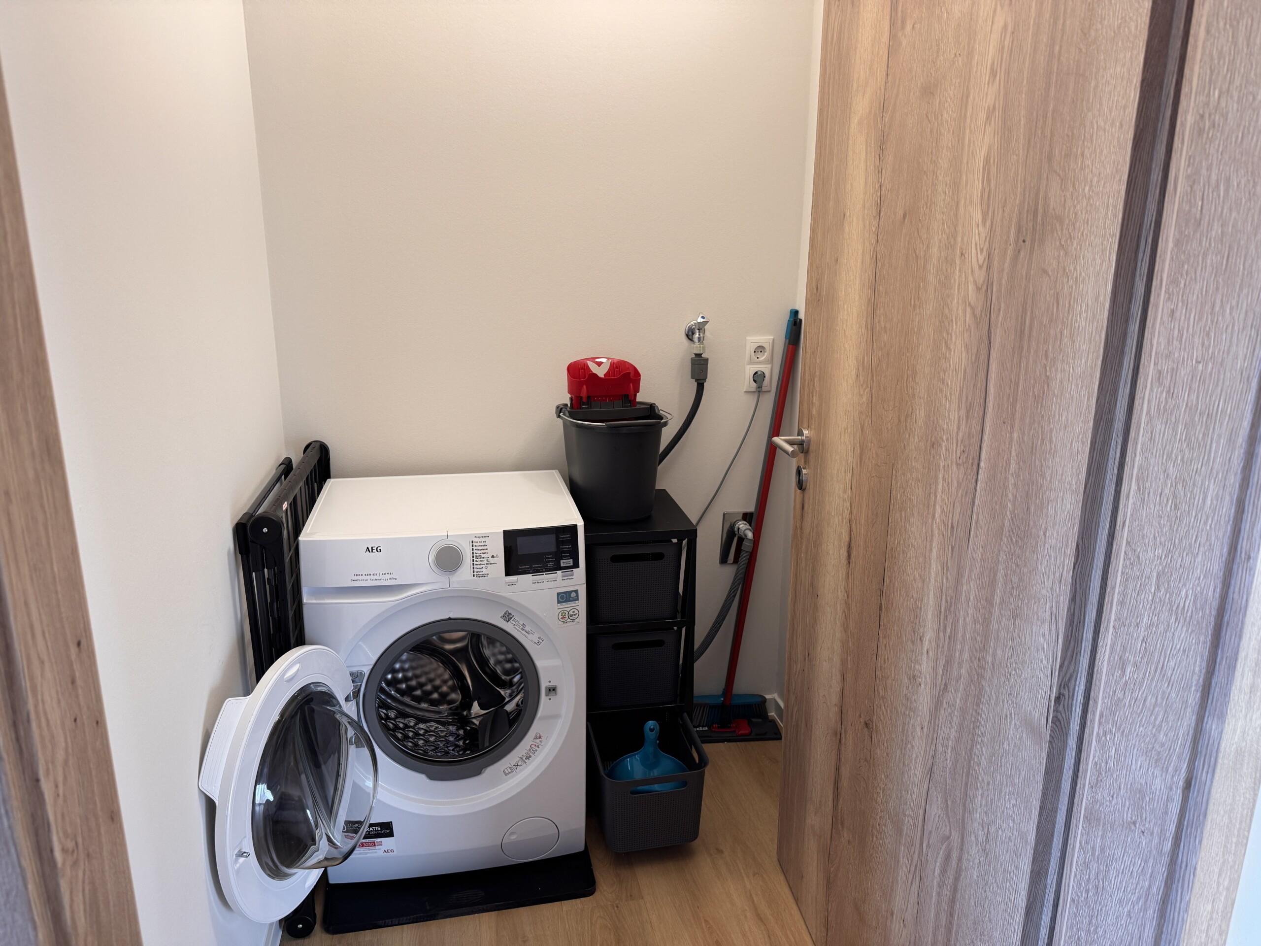 - Besen, Kehrblech, Wischer, Staubsauger (im Abstellraum)