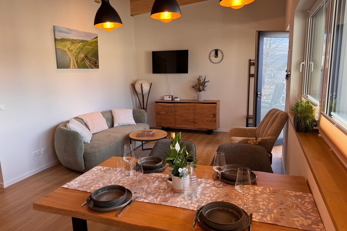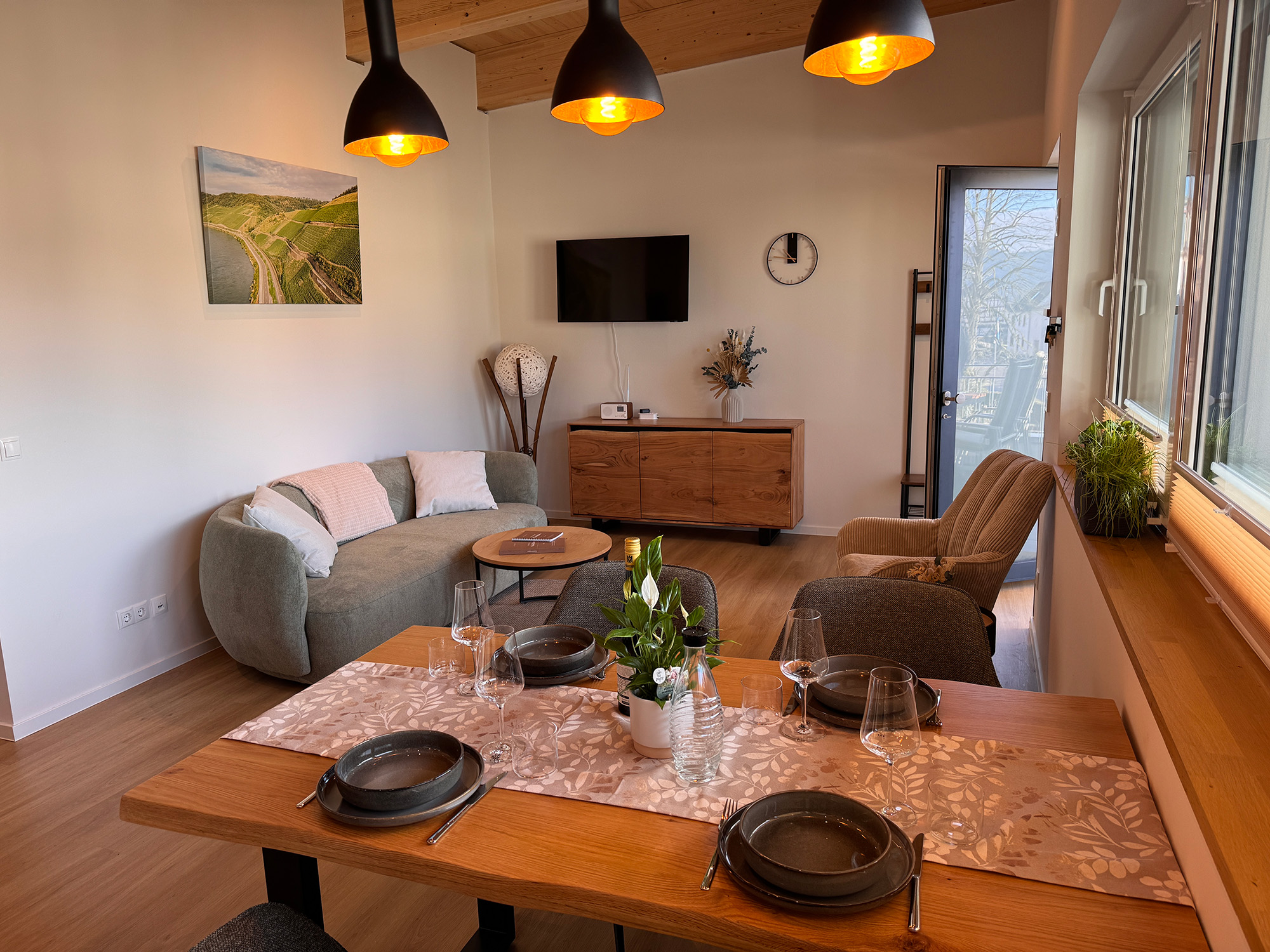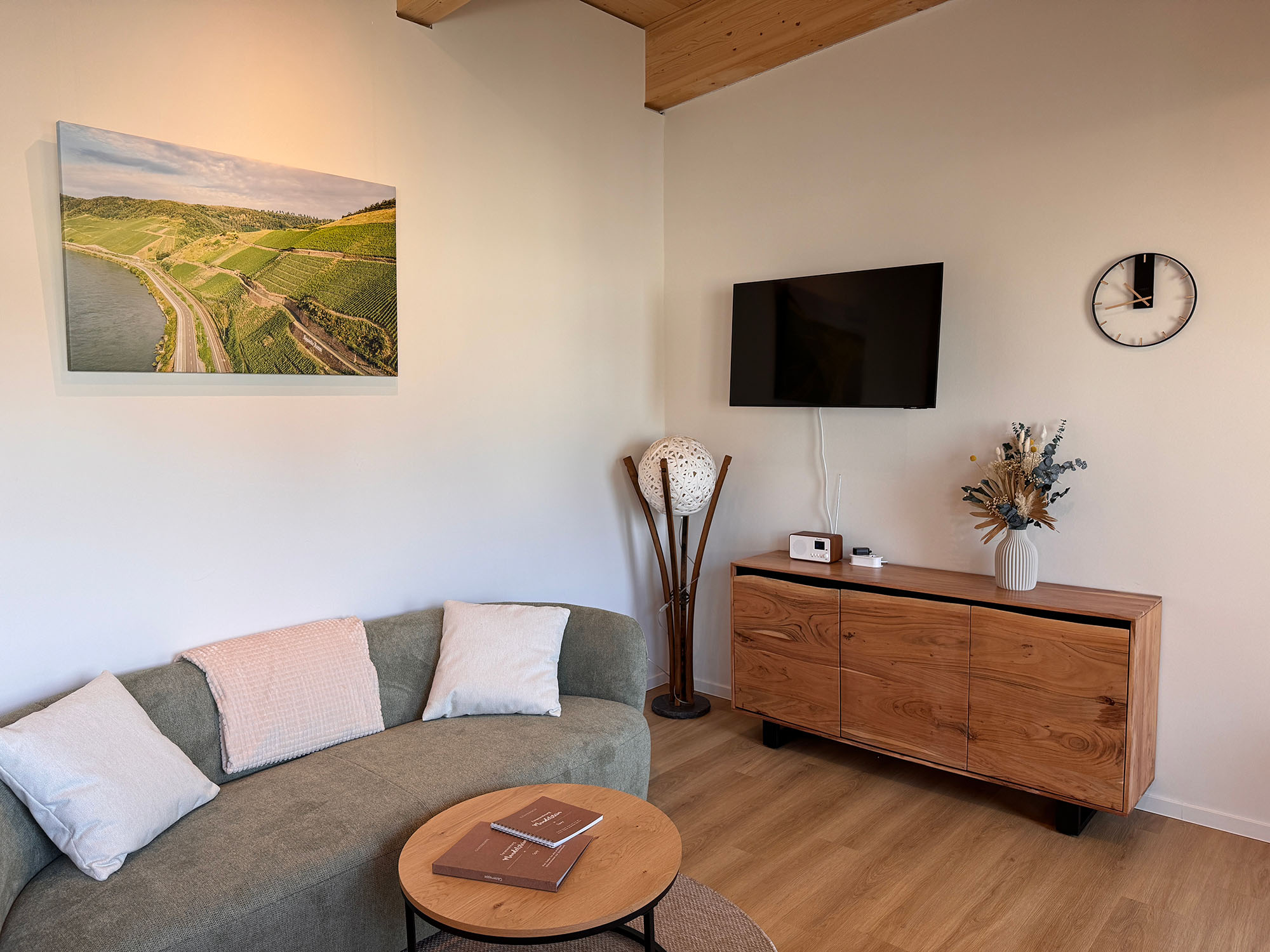 Unsere Ferienwohnungen sind Rückzugsorte zum Ankommen und Entspannen. Hochwertige Materialien, durchdachte Raumaufteilung und eine warme Atmosphäre sorgen dafür, dass Sie sich vom ersten Moment an auf den 62 qm wohlfühlen. Ob ruhiger Schlaf nach einem aktiven Tag oder gemütliche Stunden im Wohnbereich – genießen Sie Komfort, Ruhe und Raum für Ihre Auszeit am Mittelrhein.